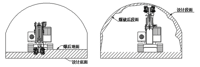 配备铣挖头后,可在硬度4F的煤巷或半煤巷掘进时工作,无需炮掘。本机带有快速连接器,岩巷掘进时挖斗和铣挖头互换,爆破后用挖斗装渣,实现了一机两用;