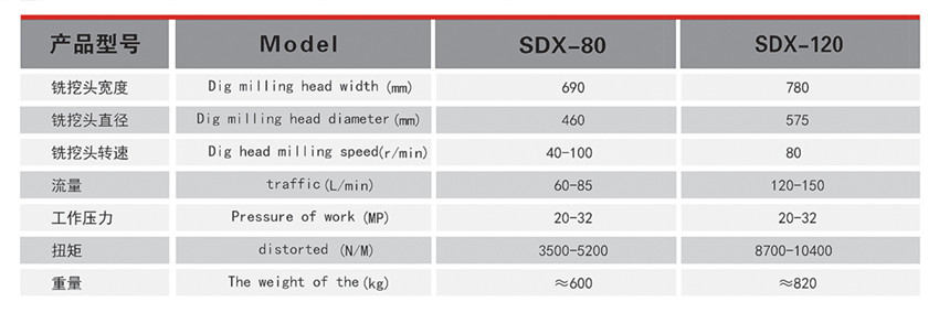 主要液压件采用德国进口正齿轮变速箱,由高扭矩的液压马达驱动,确保铣挖头在恶劣的高负荷作业条件下应付自如。配有内喷雾及高压外喷雾装置,灭尘效果好;